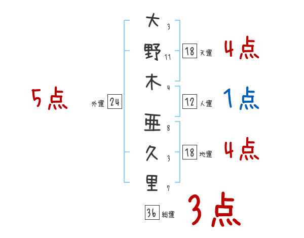 大野木亜久里さんの画数の鑑定結果