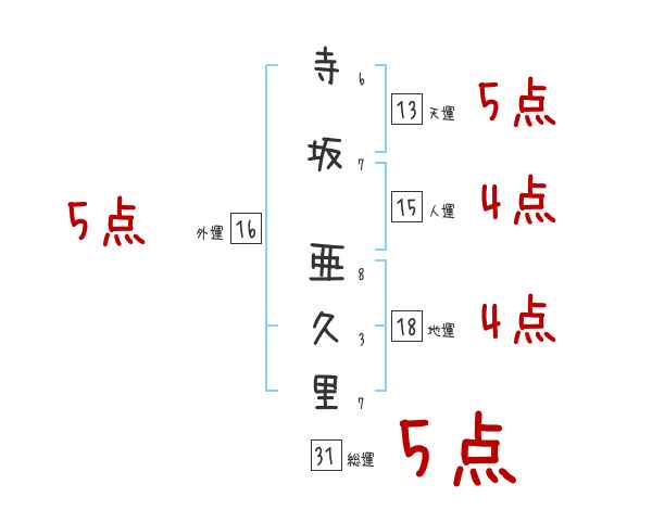 寺坂亜久里さんの画数の鑑定結果