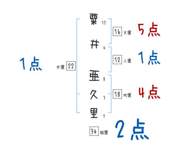 粟井亜久里さんの画数の鑑定結果