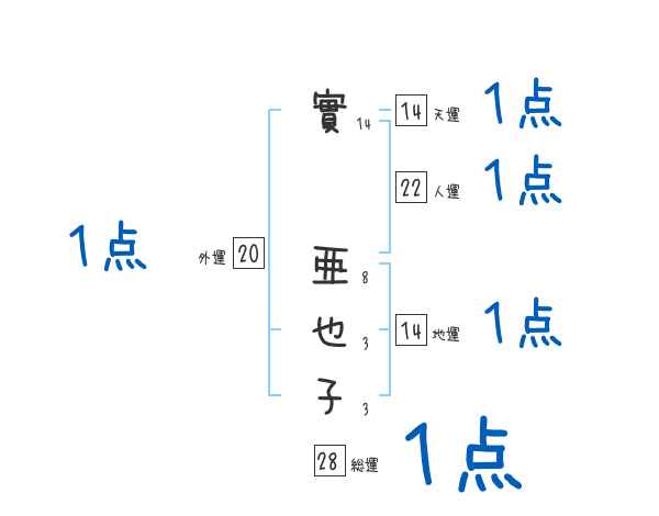 総運![]() | 實亜也子さんの総運は28画の1つ星!家庭環境に注意。スポーツで活躍できる能力があるかも。 あなたの人生を表す1番重要な運勢です。生涯を通じて影響する総合運となり、主に50歳以降の晩年期に影響を及ぼします。 |