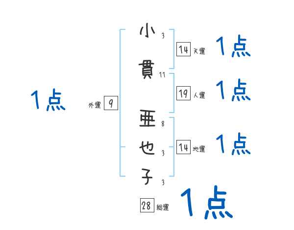 小貫亜也子さんの画数の鑑定結果