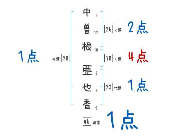 中曽根亜也香さんの画数の鑑定結果