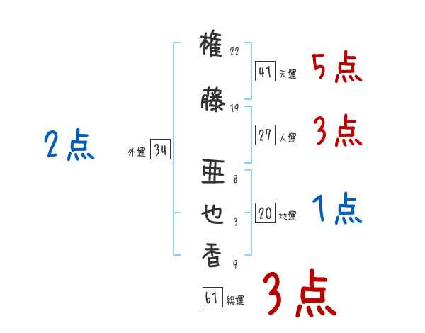 権藤亜也香さんの画数の鑑定結果