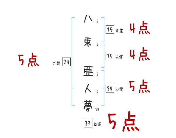 外運![]() | 八束亜人夢さんの外運は24画の5つ星!家庭運が良く順調な人生。金運にも恵まれる。 生活面を象徴する運勢です。外部から受ける影響力を表し、結婚運、家庭運や職場、環境への順応性を表します。 |