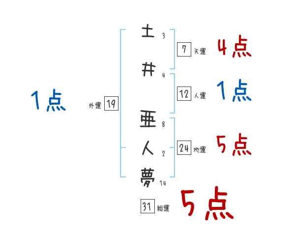 外運![]() | 土井亜人夢さんの外運は19画の1つ星!優れた才能を持ちますが、協調性が足りないことも。周りの人と協力する事を意識しましょう。 生活面を象徴する運勢です。外部から受ける影響力を表し、結婚運、家庭運や職場、環境への順応性を表します。 |