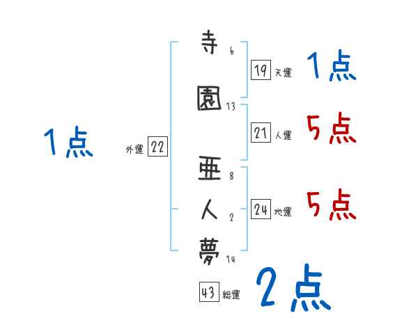 寺園亜人夢さんの画数の鑑定結果