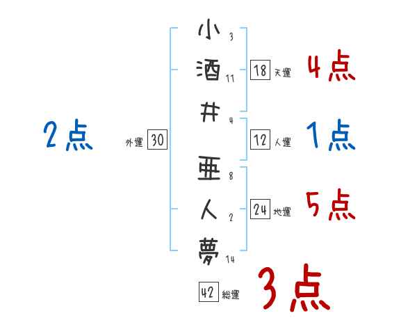 小酒井亜人夢さんの画数の鑑定結果