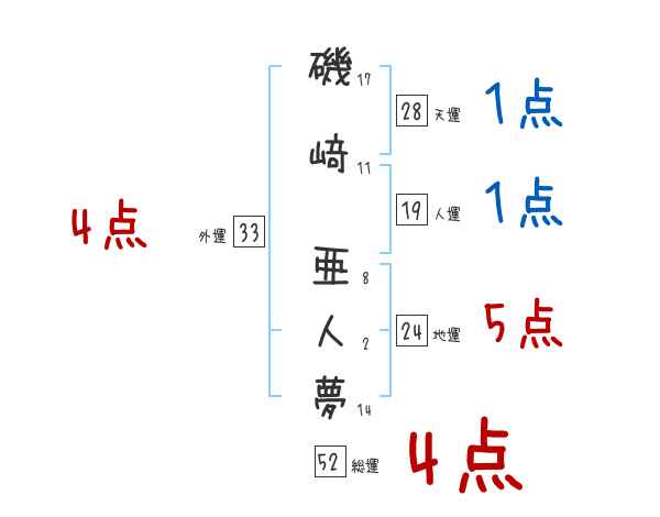 磯﨑亜人夢さんの画数の鑑定結果