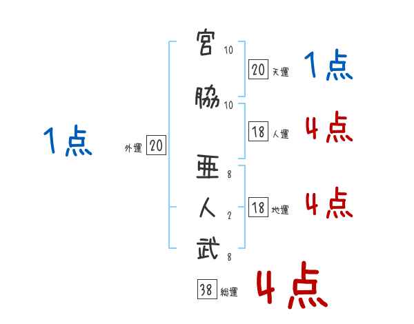 宮脇亜人武さんの画数の鑑定結果