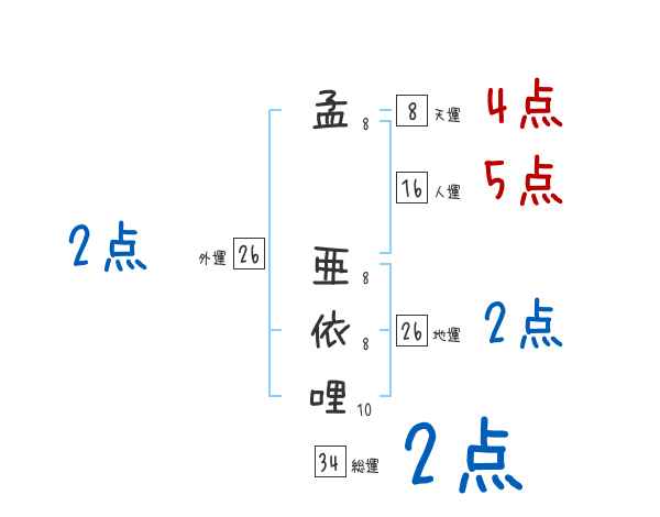 孟亜依哩さんの画数の鑑定結果