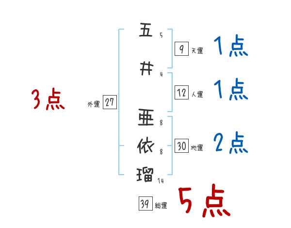 総運![]() | 五井亜依瑠さんの総運は39画の5つ星!社交性に優れ人望が厚い。人の上に立ち成功する。 あなたの人生を表す1番重要な運勢です。生涯を通じて影響する総合運となり、主に50歳以降の晩年期に影響を及ぼします。 |