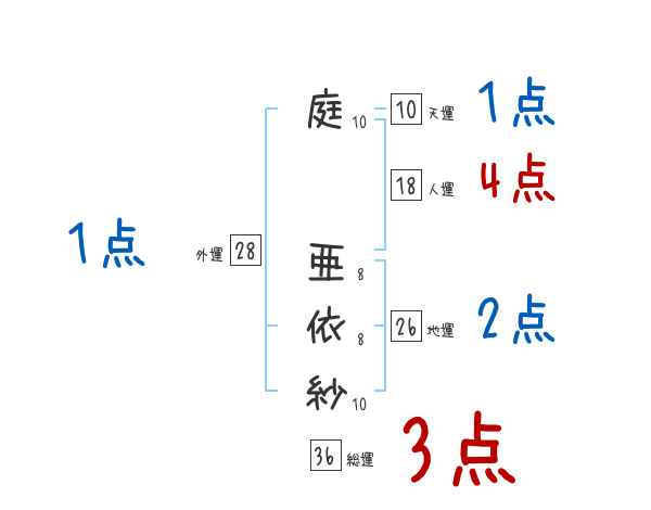 庭亜依紗さんの画数の鑑定結果