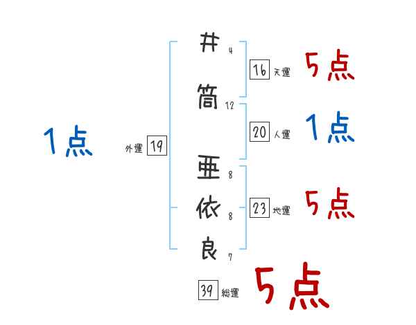 天運![]() | 井筒亜依良さんの天運は16画の5つ星!人望が厚く大きく発展する。逆転成功が見える。 家系が持つ宿命的な運勢を表します。祖先から受け継いだ苗字ですので自分の力が及びません。家柄を象徴します。 |