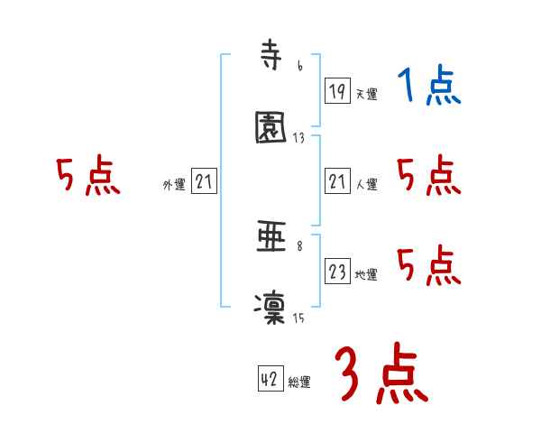 寺園亜凜さんの画数の鑑定結果