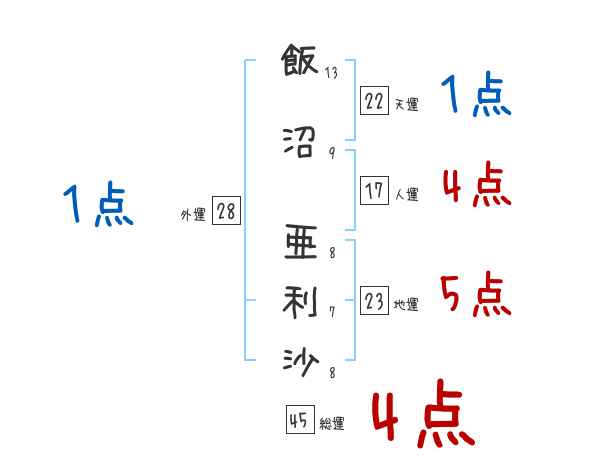 飯沼亜利沙さんの画数の鑑定結果