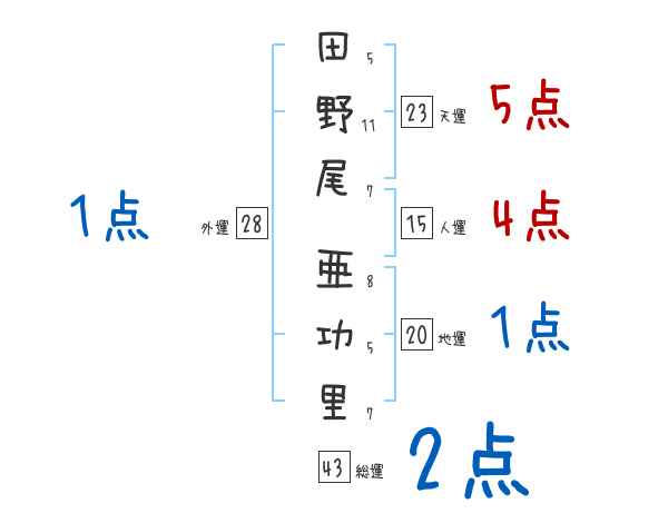 田野尾亜功里さんの画数の鑑定結果