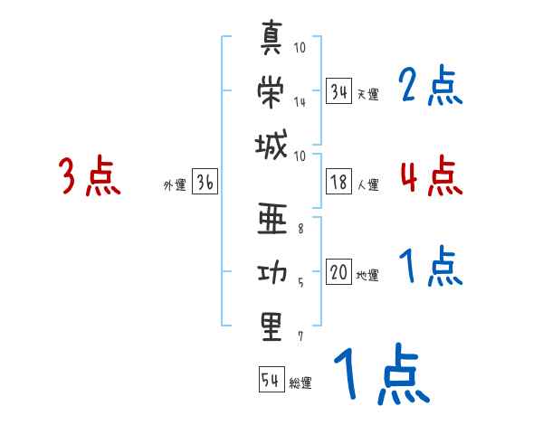 真栄城亜功里さんの画数の鑑定結果