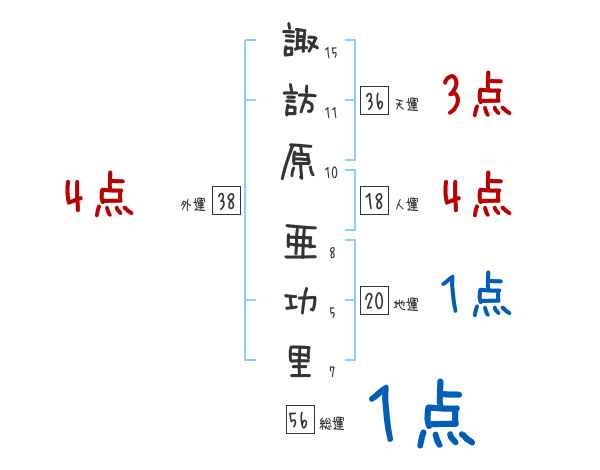諏訪原亜功里さんの画数の鑑定結果