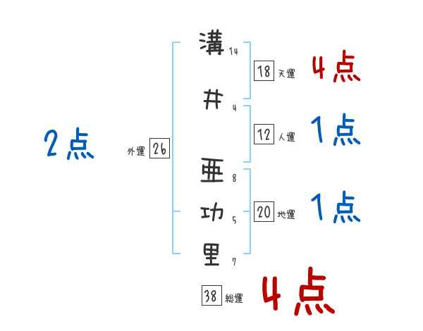 溝井亜功里さんの画数の鑑定結果