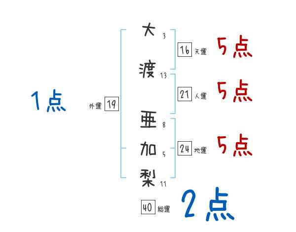 大渡亜加梨さんの画数の鑑定結果