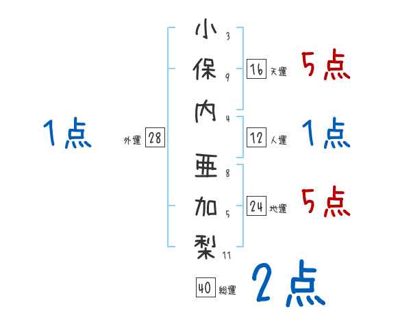 小保内亜加梨さんの画数の鑑定結果