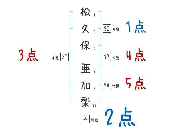 松久保亜加梨さんの画数の鑑定結果