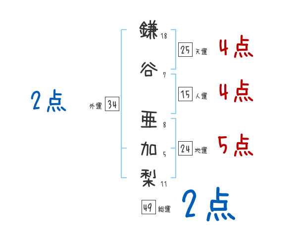 天運![]() | 鎌谷亜加梨さんの天運は25画の4つ星!個性があり才能があふれる。強運の持ち主で発展する。 家系が持つ宿命的な運勢を表します。祖先から受け継いだ苗字ですので自分の力が及びません。家柄を象徴します。 |