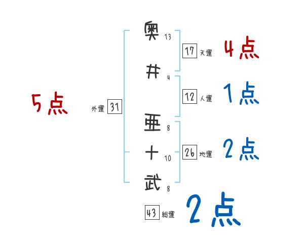 奥井亜十武さんの画数の鑑定結果
