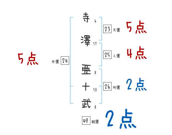 寺澤亜十武さんの画数の鑑定結果