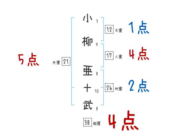 小柳亜十武さんの画数の鑑定結果