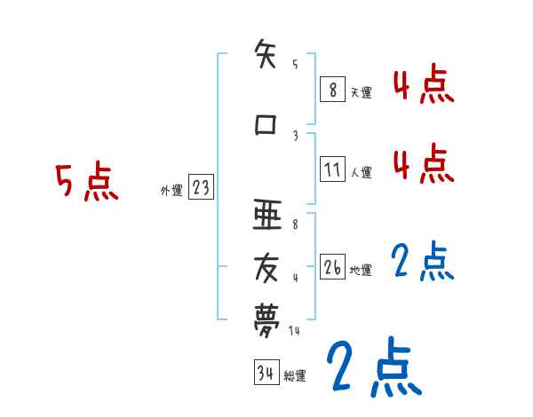 矢口亜友夢さんの画数の鑑定結果