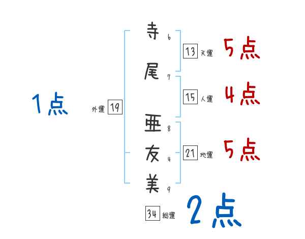 寺尾亜友美さんの画数の鑑定結果