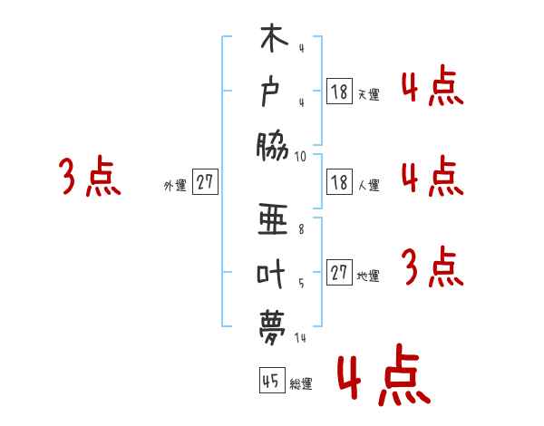 木戸脇亜叶夢さんの画数の鑑定結果