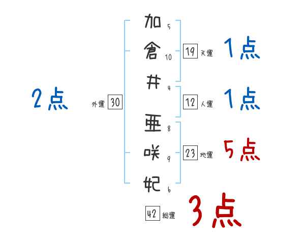 総運![]() | 加倉井亜咲妃さんの総運は42画の3つ星!病気に注意。多芸であるが消極的でおとなしい。 あなたの人生を表す1番重要な運勢です。生涯を通じて影響する総合運となり、主に50歳以降の晩年期に影響を及ぼします。 |
