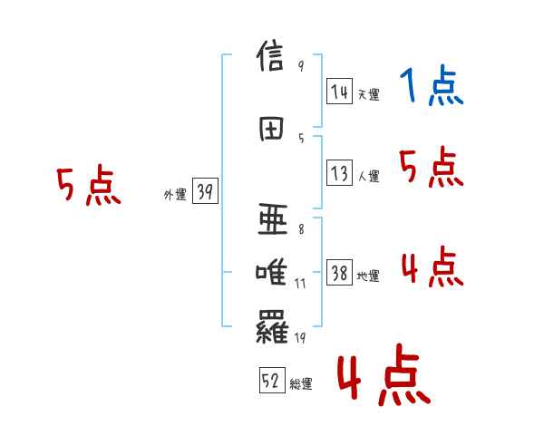 信田亜唯羅さんの画数の鑑定結果