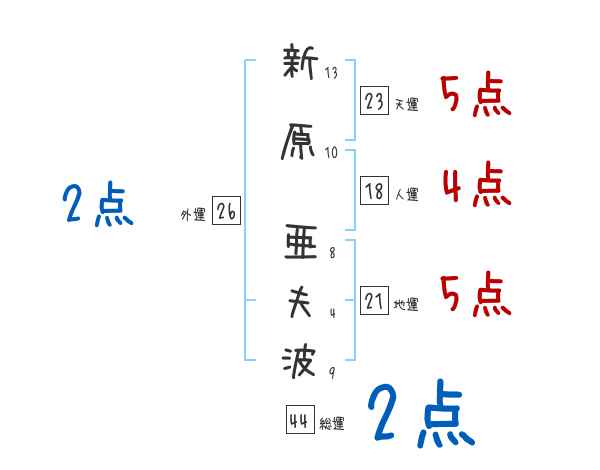 新原亜夫波さんの画数の鑑定結果