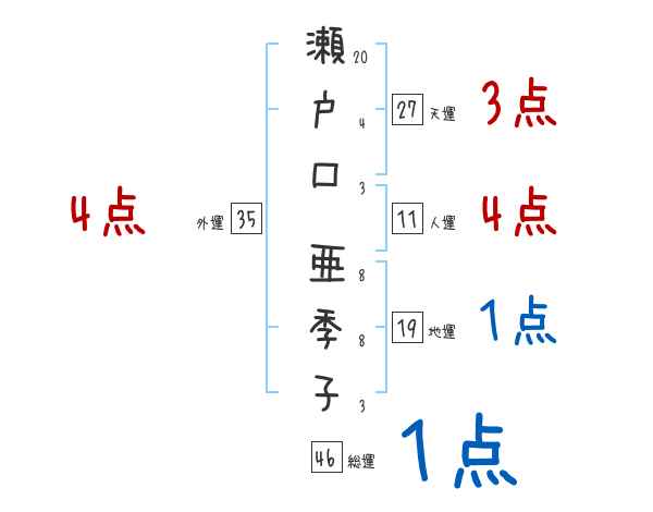 瀬戸口亜季子さんの画数の鑑定結果