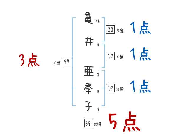 亀井亜季子さんの画数の鑑定結果