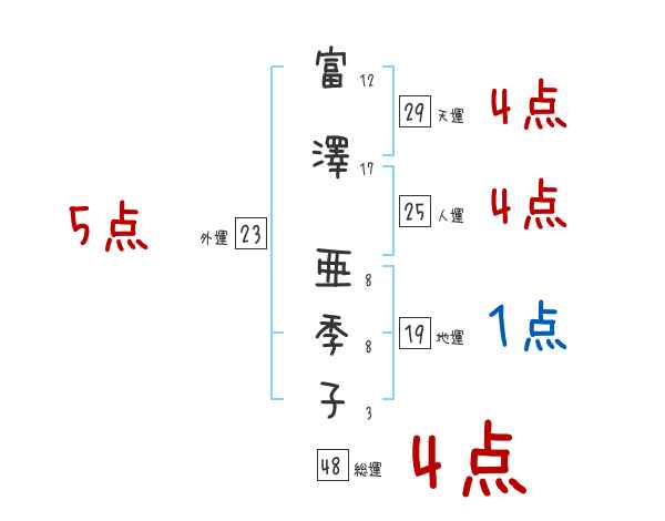 富澤亜季子さんの画数の鑑定結果
