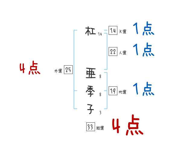 杠亜季子さんの画数の鑑定結果