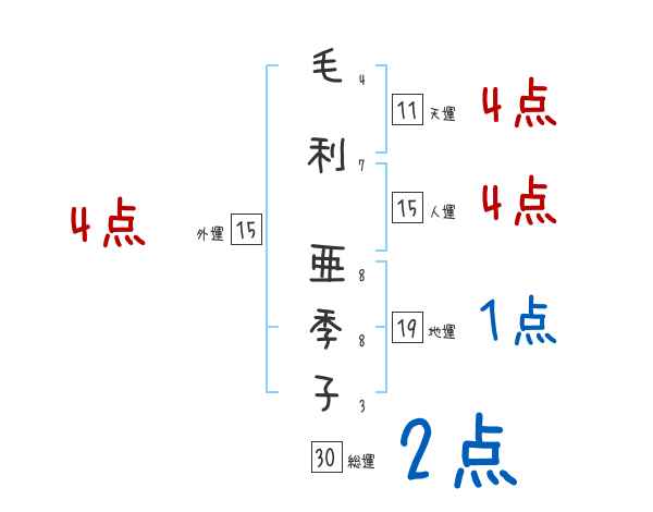 毛利亜季子さんの画数の鑑定結果