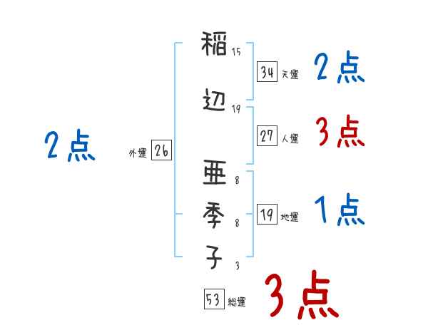 稲辺亜季子さんの画数の鑑定結果
