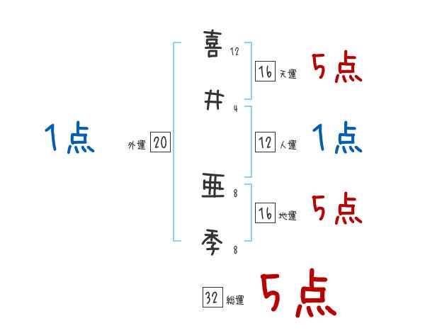 喜井亜季さんの画数の鑑定結果