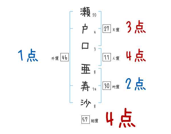 瀬戸口亜寿沙さんの画数の鑑定結果