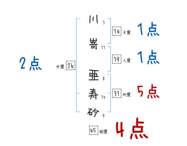 川嵜亜寿砂さんの画数の鑑定結果