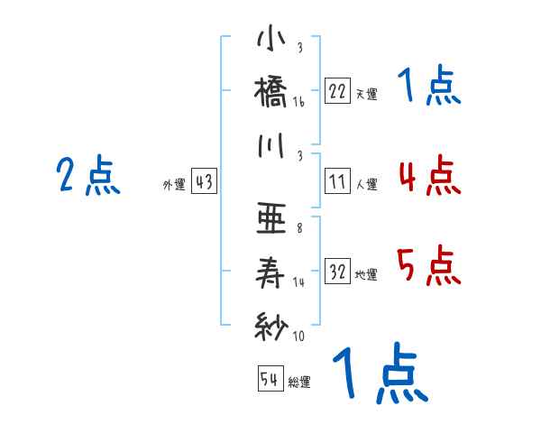 小橋川亜寿紗さんの画数の鑑定結果