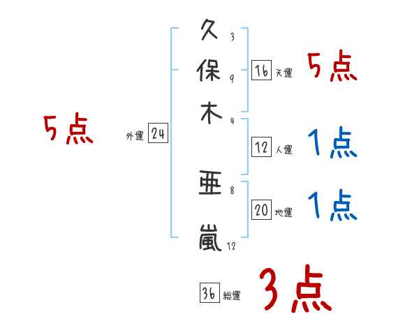 久保木亜嵐さんの画数の鑑定結果