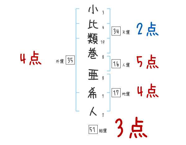 小比類巻亜希人さんの画数の鑑定結果