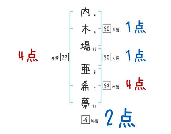 内木場亜希夢さんの画数の鑑定結果