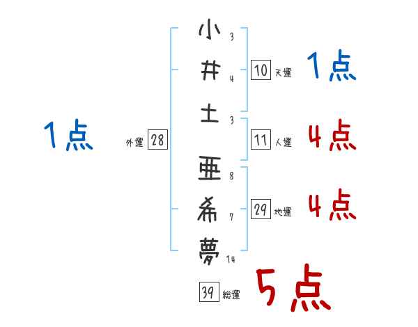 小井土亜希夢さんの画数の鑑定結果